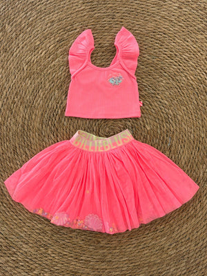 COMPLETO TOP CORTO E GONNA CON APPLICAZIONI INTERNE